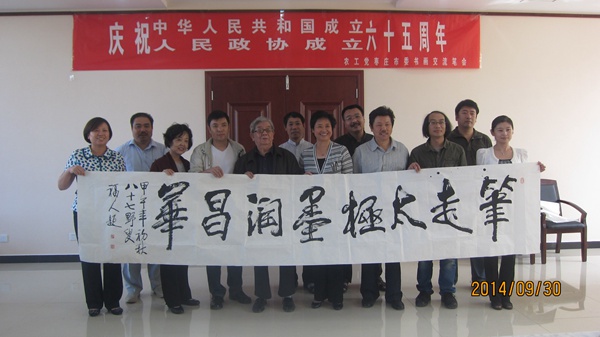 在笔会现场,10余名书画家们挥笔疾书、浓情泼墨、点染丹青,在浓厚的艺术气息和节庆氛围中,创作出一篇篇诗章、一幅幅书画,抒发着对新中国的热爱,讴歌了中国共产党领导下的人民政协事业的辉煌历程和成就,表达了对美丽中国、幸福新枣庄未来发展宏图的美好憧憬。此次活动活动共创作30余副书画艺术作品,作品题材广泛、立意新颖、寓意深刻,枣庄市书画界农工党党员以笔墨丹青、质朴情怀和大团结精神,向新中国和人民政协65周年华诞献上了一份艺术厚礼。