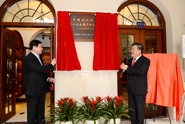 2015年9月17日下午,中国农工民主党第一次全国干部会议会址修缮和布展暨党史教育基地揭幕仪式在上海举行,农工党中央主席陈竺、常务副主席刘晓峰,副主席何维、姚建年、杨震、朱静芝、蔡威、龚建明,原副主席陈灏珠、左焕琛出席仪式