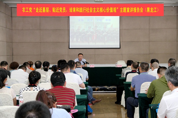 2016年6月25日-26日,农工党黑龙江省委会在黑龙江省社会主义学院组织开展“走进基层,贴近党员,培育和践行社会主义核心价值观”主题宣讲活动。农工党黑龙江省委会驻会副主委刘长青,齐齐哈尔市龙沙区监察局副局长、农工党齐齐哈尔市委会机关总支二支部副主委张桓做主题宣讲。省委会秘书长孔令全出席活动。