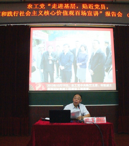此次活动是根据农工党重庆市委会《关于开展坚持和发展中国特色社会主义学习实践活动2016年工作计划的通知》及2016年“走进基层,贴近党员——培育和践行社会主义核心价值观”宣讲活动工作方案安排的。市委近期还将在涪陵举行一场主题宣讲活动。(农工党重庆市委会宣传处 刘盛开)