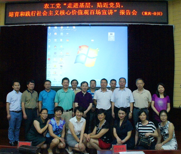 2016年7月8日,农工党重庆市委会宣讲团赴渝西片区开展主题宣讲活动。农工党重庆市委会秘书长孙西主持宣讲会,中共合川区委常委、统战部部长卢波、常务副部长袁中东,农工党合川区委主委吴景明、铜梁区工委主委陈庆华以及来自合川、荣昌、铜梁、潼南、江津区的农工党员代表共130余人聆听了宣讲报告。
