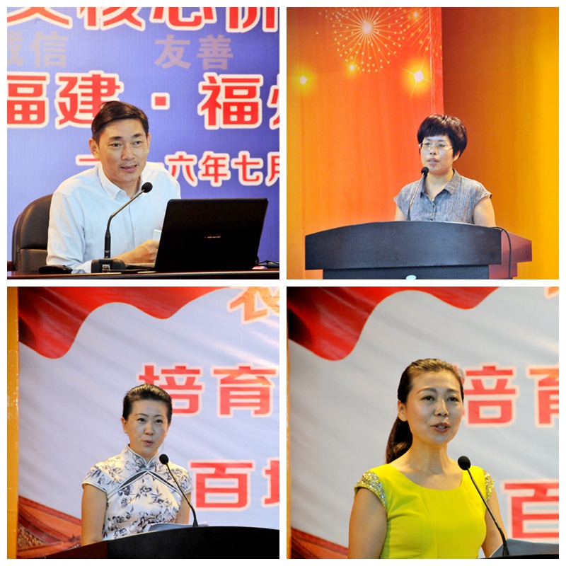 广东省政协常委、农工党广东省委会常委、中山大学博导秦鉴教授作题为《从新党员到基层主委都认真做》的辅导报告,他和大家分享了留学海外激发爱国热情、加入农工党调动参政议政积极性、作为基层主委打造朝气蓬勃的组织、成长为政协常委立心立命建言献策的心路历程,以大量事迹娓娓道来什么是社会主义核心价值观的“爱国”、“敬业”、“诚信”;农工党漳州市委会党员、漳州市妇幼保健院院长、“2015年感动福建十大人物”林丽琴以《爱在墨脱》为题,带领听众一同走近她作为福建援藏女医生克服千难万险、为藏族同胞守护生命健康、磨砺自己勇挑重担的工作生活;农工党厦门市委会妇女工作委员会主任、厦门市民立小学副校长王萍以《不懈追梦 大爱护心》为题讲述了农工党福建省委会副主委、厦门市委会主委、厦门市心血管病医院院长王焱学有所成报效祖国、大医精诚救死扶伤、心系民生参政议政的奋斗人生;农工党福建省委会省直工委文艺总支党员、知名主持人白雪杰以《用爱托起生命的希望》为题讲述了农工党南平市委会主委、南平市人民医院副院长潘丽贞创新治疗方法攻坚克难不孕症、关注“失独家庭”助其圆梦、推动成立“太阳送子”项目造福群众的感人故事。演讲立体展示了四位优秀农工党党员踏实生活、奋进工作、光彩绽放的人生履历,彰显了立意高远、催人进取的榜样力量。