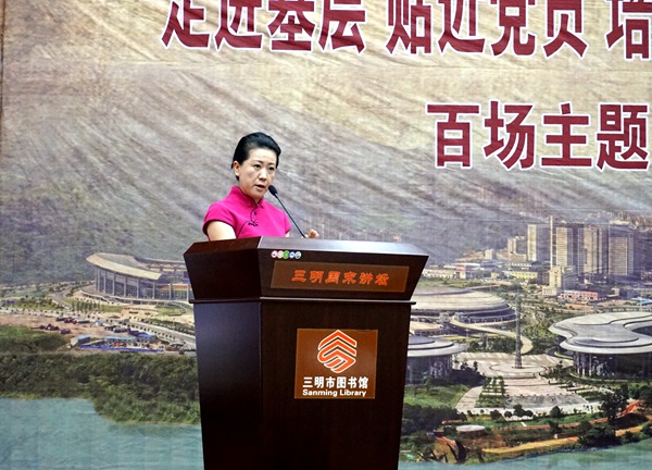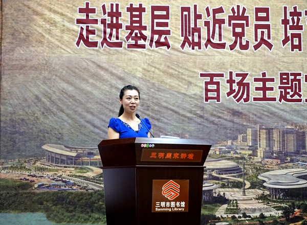 宣讲报告会由农工党百场主题宣讲团领队刘保明主持。三明市政协副主席、三明市旅游局局长陈欣出席宣讲报告会。中共三明市委统战部部务会议成员、调研员曹观华应邀出席。农工党三明市委会专职副主委赖荣致辞。