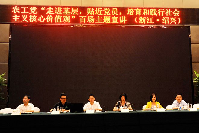 2016年8月17日下午,农工党“走进基层、贴近党员,培育和践行社会主义核心价值观”主题宣讲活动在浙江绍兴举行。农工党浙江省委会副主委、农工党中央宣讲团成员、浙江工商大学商务研究院院长郑勇军,农工党浙江专家库成员、杭州世哲时装有限公司董事长金国伟出席会议并在会上作了精彩宣讲。绍兴市政协副主席、市委会主委胡少云主持宣讲会。省委会宣传部部长戚青青,市委会副主委洪安龙、骆学新等出席会议。