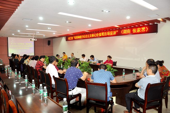 2016年9月7日上午,农工党“走进基层、贴近党员,培育和践行社会主义核心价值观百场宣讲”活动走进张家界。农工党张家界市委会党员40余人参加活动,聆听宣讲。市委会副主委张赟主持宣讲会。