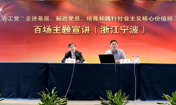 “走进基层,贴近党员,培育和践行社会主义核心价值观”百场主题宣讲会是农工党中央今年学习实践活动的重要内容,旨在进一步引导和带动各级组织和广大党员在履职尽责中自觉践行社会主义核心价值观,切实把它贯穿于农工党各项工作之中,推动各项工作开创新局面。应邀来到宁波的农工党广东省委会常委、农工党中山大学基层委员会主委秦鉴教授,为全市400多名农工党员作了一场题为《从新党员到基层主委都认真做》的主题宣讲。