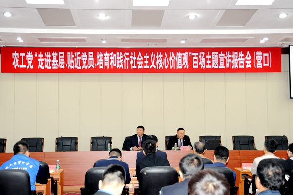 农工党辽宁省委会原副主委、辽宁省社会科学院社会学研究所原所长沈殿忠,农工党营口市委会义工总队支部主委吴云峰分别作了《培育和践行社会主义核心价值观长期坚持、全面贯彻、不断发展共产党领导的多党合作制度》和《践行慈善精神 弘扬传统美德 做优秀农工党党员》主题报告。