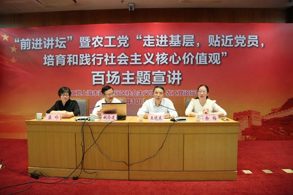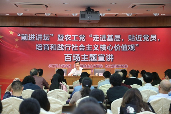 2016年10月20日下午,“前进讲坛”暨农工党“走进基层、贴近党员,培育和践行社会主义核心价值观”百场主题宣讲报告会在闵行区政府会议中心举行。农工党中央宣讲团成员、上海市社会主义学院副院长、农工党上海市委会副主委,姚俭建教授作了题为《民主党派新定位与基本职能》的宣讲报告。农工党上海市委会秘书长王晓东,中共闵行区委统战部副部长、闵行区社会主义学院院长巫岭出席并讲话。农工党闵行区委会主委余梅主持报告会。