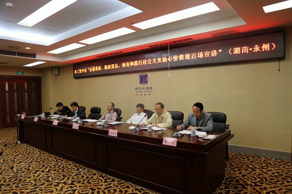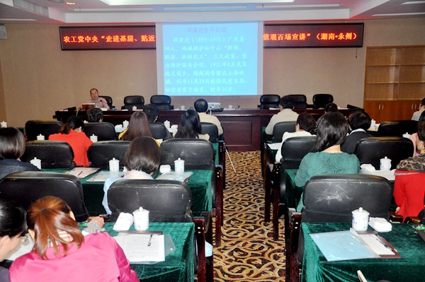 2016年10月25日上午,农工党“走进基层、贴近党员,培育和践行社会主义核心价值观”百场宣讲活动走进永州。市委会副主委欧阳德群主持宣讲会。