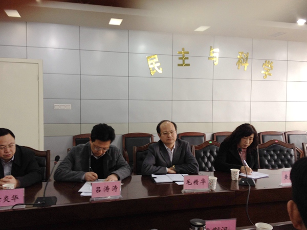 2014年10月29日,农工党荆州市委会中心学习组召开专题会议,组织在荆州的市委会委员学习中共十八届四中全会精神。会议由农工党荆州市委会专职副主委吕涛涛主持。