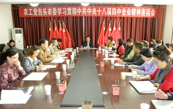 2014年11月1日,农工党包头市委会召开学习贯彻中共十八届四中全会精神座谈会。包头市人大常委会副主任、农工党包头市委会主委张伯群主持会议并发言。