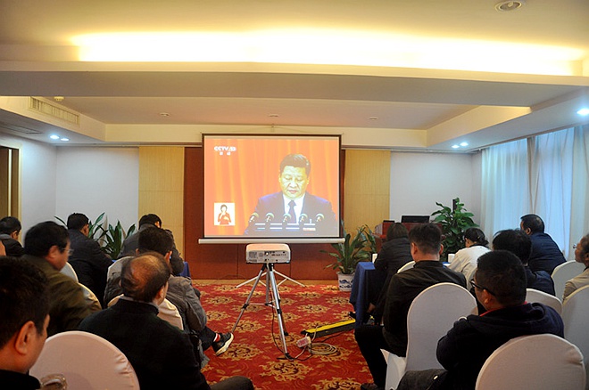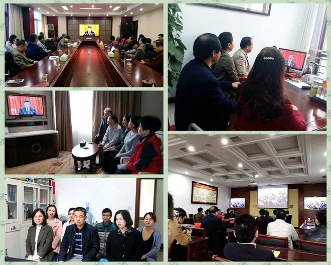 上午9时整,大家齐聚一堂、精神振奋,怀着无比喜悦的心情,全程收看了大会开幕会盛况,聆听了习近平总书记所做的报告。大家聚精会神听报告、全神贯注作笔记,表现出对中共第十九次代表大会的热切期待。