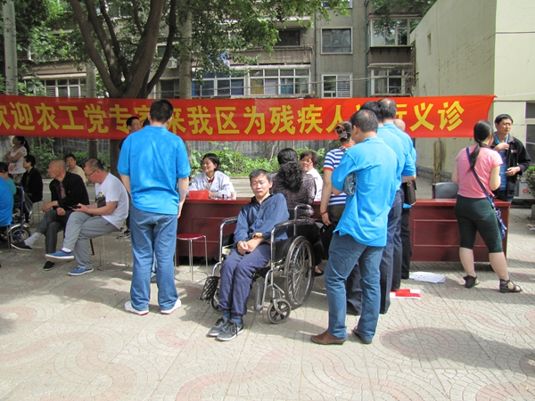在第二十四次“全国助残日”到来之际,2014年5月15日,农工党石家庄市委会组织医疗专家服务团到新华区残联人康复中心开展义诊活动。