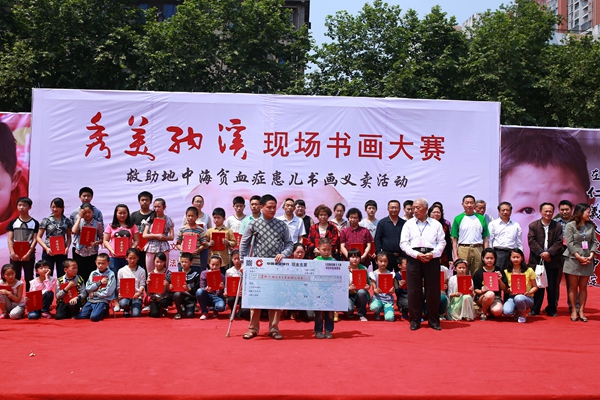 书画大赛共有244名选手参与比赛,上至80多岁高龄的老人,下至7、8岁的孩子,齐聚赛场,延续“一方有难,八方支援”的中华美德;所有党员身着志愿者统一服装无私付出,活跃在现场的每一个角落,与患儿王原才小朋友心手相连;有近60家企业及1000余名群众参与到购买书画作品的爱心接力,传播人间大爱正能量。