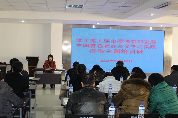 2014年12月11日—12日,农工党大连市委会为了深入推动坚持和发展中国特色社会主义学习实践活动,在大连景苑大厦举办为期二天的基层骨干主题培训班。农工党大连市委会副主委李志主持培训。