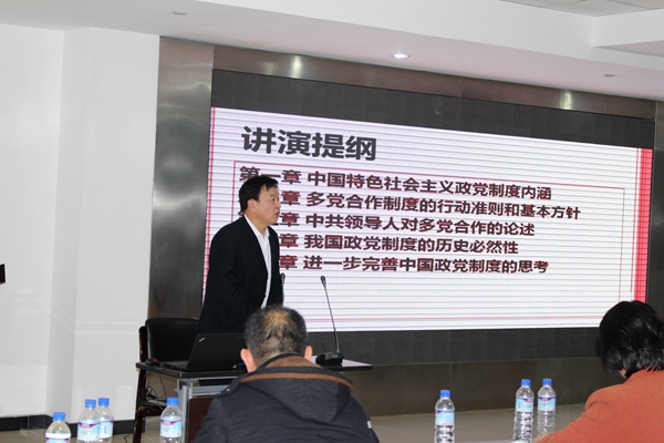 本期培训的主题是坚持和发展中国特色社会主义学习实践活动。市委会邀请铁岭市委党校曹立清教授和大连职业技术学院杨明教授分别做了《全面推进依法治国一一十八届四中全会基本精神解读》和《中国特色社会主义政党关系》讲座,很受党员们的欢迎。会议期间,市委会根据党员的需求,还特邀东北财经大学博士王子言老师为党员们就《商务礼仪与商务沟通》做了生动的讲解,赢得会场阵阵掌声。