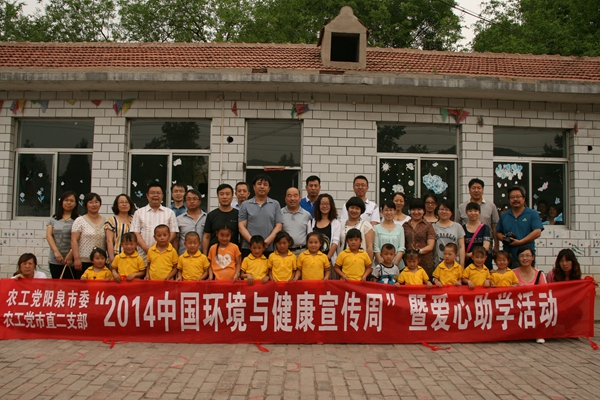 2014年5月31日,在“中国环境与健康宣传周”及“六一”儿童节来临之际,农工党阳泉市委会联合市直二支部到郊区旧街乡枣园村开展爱心助学活动。