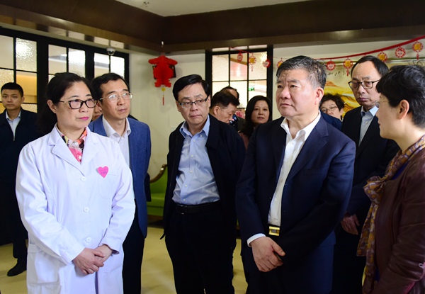 在杨浦区日月星养老院,陈竺、何维一行听取负责人介绍医养结合型养老院的基本情况,并了解目前政府对养老机构的优惠扶持政策,以及养老机构对优化营商环境的意见建议。随后,陈竺、何维一行走访了居住在养老院的老人,详细询问老人们的健康状况、生活环境以及对养老院收费标准的满意度。
