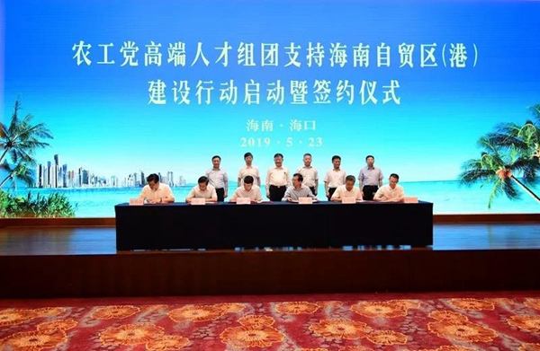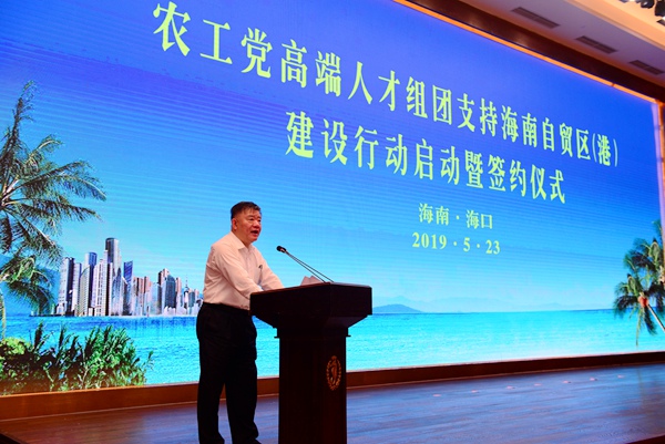 2019年5月23日下午,农工党高端人才组团支持海南自贸区(港)建设行动启动暨签约仪式在海南省海口市举行。全国人大常委会副委员长、农工党中央主席陈竺出席并讲话。中共海南省委副书记、省长沈晓明向来宾致辞,中共海南省委常委、组织部部长彭金辉主持活动仪式。农工党中央副主席杨震,农工党中央副主席兼秘书长曲凤宏,农工党中央副主席、海南省副省长王路出席活动。