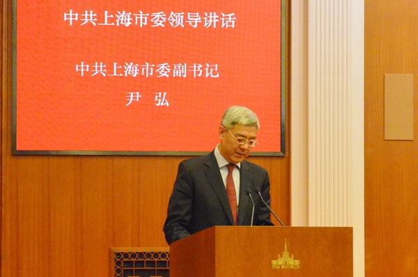 尹弘在讲话中指出,五年来,农工党上海市委会在农工党中央和中共上海市委领导下,充分发挥联系医药卫生和人口资源环境领域人才的优势,认真履行职能,为上海经济社会发展作出积极贡献。希望新一届农工党上海市委会和全市农工党组织及广大成员进一步坚定政治共识,增强政治意识、大局意识、核心意识、看齐意识,巩固团结奋斗的共同思想政治基础;进一步深化政治交接,继承和弘扬农工党老一辈领导人与中国共产党风雨同舟、荣辱与共的优良传统,切实承担起中国特色社会主义参政党的责任担当,确保多党合作事业薪火相传;进一步加强自身建设,不断提升服务大局的能力和水平,主动参政议政,积极建言献策,为上海顺利完成中共中央交给的目标任务、推动改革发展稳定各项事业添智助力。