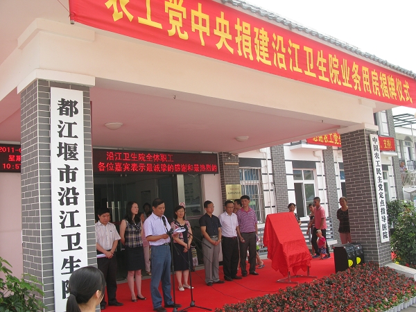 都江堰沿江卫生院在2008年汶川特大地震中严重受损,在我党中央及四川省委会的积极协调下,将其确定为农工党的援建项目,并用农工党员的“特殊党费”及爱心捐款130万元为卫生院援建了一所业务楼,总面积达600平米,设置病房11间,床位33张,新增理疗科、皮肤科、口腔科、妇科、急诊等功能科室,拓展了卫生院诊疗范围。这将为促进当地基层医疗卫生事业的发展,解决农民群众“看病难”的问题起到积极的作用。