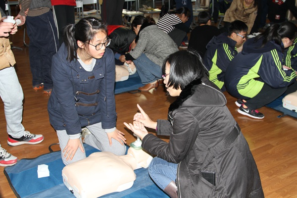 2014年12月4日,农工党浙二医院支部联合浙二医院急诊科中共党支部、浙二医院技能培训中心前往杭二中滨江校区,对35位高二学生进行了为时2个小时的公众心肺复苏培训教学活动。本次活动也是浙二医院农工党支部“卫生健康教育型”特色支部创建活动——“健康课程育春苗”的课程内容之一。