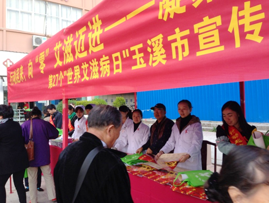 2014年12月1日上午,农工党玉溪市委会第十二支部及红塔区防艾办、区卫生局、区计生委、玉溪市第三人民医院等部门在聂耳公园北门开展了第27个“世界艾滋病日”大型防艾宣传活动。活动共展出防艾知识宣传展板10块,发放各种艾滋病防治知识宣传材料6500余份,防艾宣传购物袋1000余个,防艾纸巾500余包,安全套20000余只。还组织了花灯表演等多种方式开展宣传。(农工党玉溪市委会)