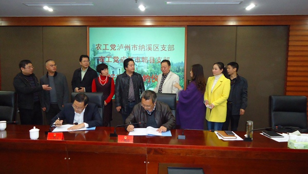 交流会后,郫县统战部领导和纳溪统战部领导见证了郫县农工党支部与纳溪支部结成“友好支部”签字仪式,在场相关领导和农工党员欢欣鼓舞,共同展望两个支部在今后参与经济社会事务建设和党派活动更上一层楼。(农工党泸州市纳溪支部)