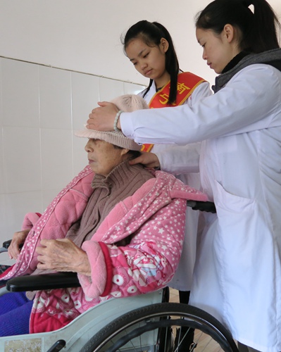 志愿服务队参观了金太阳老年公寓的医务室,指导医务室开展诊疗、保健工作。对住在公寓的一些患有疾病的老人进行义务检查,提出诊断意见和和康复治疗的建议。中医科的党员给部分老人进行按摩理疗,缓解他们的病痛。本次活动得到了老人们的热烈欢迎,并希望服务队常来开展活动,给他们带来健康和快乐。(邓永明)