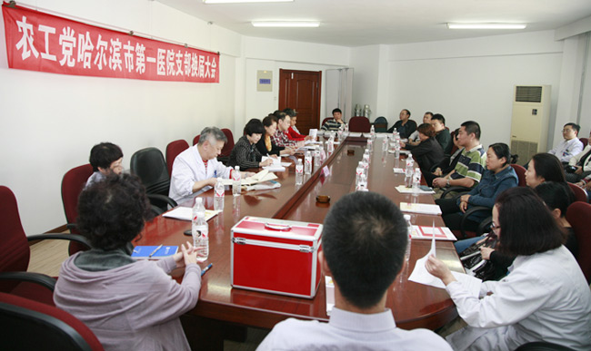2015年4月28日,农工党哈尔滨市第一医院支部举行换届大会。会议选举赵庆东、何英、崔淑莉、柳杰、于波海、郑宇、宁宇为新一届支部委员会,赵庆东为支部主任委员、何英为支部副主任委员。