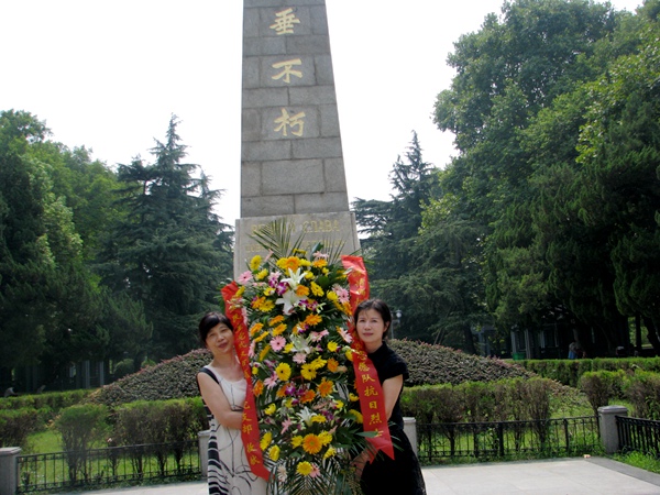 2015年8月31日,农工党武汉市商职医院支部组织党员来到位于解放公园的苏联红军抗战烈士墓前,向苏联航空志愿队的烈士敬献了花蓝和鲜花,以纪念中国人民抗日战争暨世界反法西斯战争胜利70周年。(农工党武汉市商业职工医院支部)