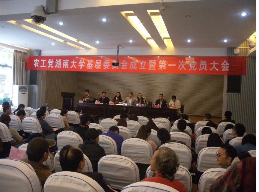 由于湖南大学和湖南财经学院合并的历史原因,形成了农工党湖南大学南校区支部和农工党湖南大学北校区支部。农工党湖南省委会批准撤销南、北支部,成立农工党湖南大学基层委员会,并召开第一次党员大会。中共湖南大学党委副书记唐亚阳、农工党湖南省委会专职副主委蒋秋桃先后作了重要讲话。
