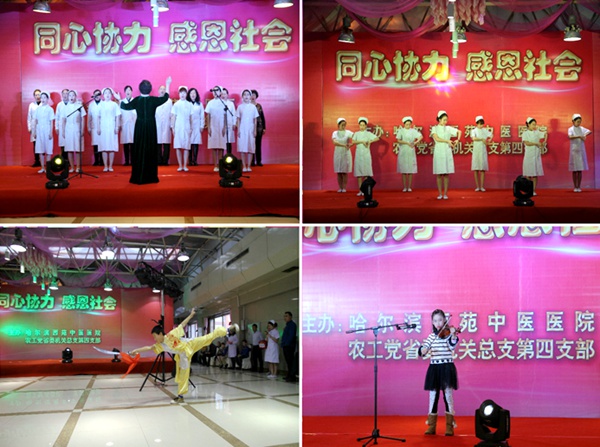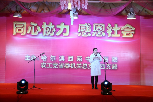 崔红院长介绍了哈尔滨西苑中医院在省委会指导和大力支持下发展壮大的历程。联谊会上,医院医务人员代表、患者代表以及省委会机关总支四支部党员代表表演了健康向上、富有时代气息的文艺节目。尤其是患者代表通过演出表达了对党和国家的热爱,对中医院的感激之情。联谊会在合唱《没有共产党就没有新中国》的歌声中结束。