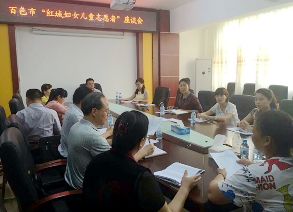 2016年5月19日下午,百色农工党党员、广西中名律师事务所韦嘉、凌广权两位律师作为妇女儿童维权志愿者参加了百色市妇联组织召开的“红城妇女儿童志愿者”座谈会,在会上对自己志愿者工作进行了总结,并对志愿者团队提出了意见和建议。
