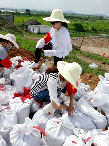 农工党瑞昌市总支主委董向阳同志系瑞昌市保健院院长,既要兼顾医院医疗业务,还要指导防汛抗洪驻地官兵医疗任务。为保障驰援瑞昌的浙江金华73051部队官兵的饮食身体健康,7月12日,董向阳带领总支委员来到赛湖二分厂,看望参加抗洪抢险的73051部队解放军官兵,送上金银花露、矿泉水、鸡蛋等防暑药品和生活物资。当天晚上,董向阳又奔赴赛湖堤坝第一线,与中共瑞昌市卫计委党员突击队一起巡堤排查,铲沙、填土一样都不落下。赤日炎炎,暑气熏蒸,保健院的同事总想让他休息一下,挥汗如雨的董向阳手里牢牢抓紧铁铲,深情地看着堤坝上飞扬的党旗说:“肝胆相照是农工党的优良传统,作为农工党基层组织,积极投身和参与防汛抗洪工作是我们应尽的职责。”
