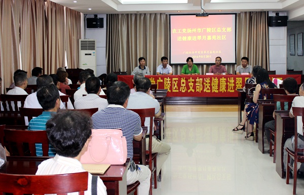 2016年8月28日上午,农工党广陵区总支部为了丰富拆迁小区居民的精神文化生活,满足社区居民的健康需求,举办了“送健康、送文化”进翠月嘉苑社区活动。