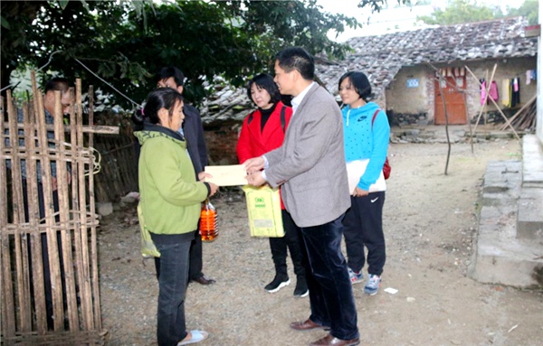 2017年1月24日,防城港市防城区副区长、农工党防城港市总支主委蒋为玉带领农工党党员来到防城区那良镇那其村开展“迎新春、送温暖、促脱贫”爱心帮扶贫困村活动。
