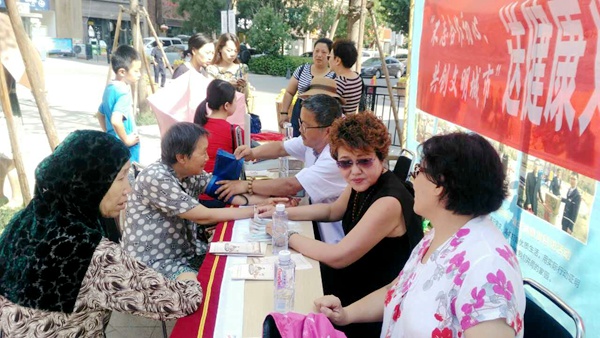 2017年7月14日,农工党兰州市安宁区基层委在银滩路社区中海凯旋门小区组织开展了“不忘合作初心、共创文明城市”送健康义诊活动。