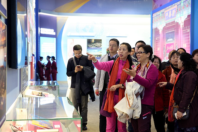在大国外交战展区,充分展示了以习近平同志为核心的党中央深刻把握国内国际两个大局,观大势,谋大事,积极推进外交理论与实践创新,完善中国外交方略与布局,开创对外工作新局面,引领中国在复杂多变的国际格局中始终保持战略主动。以“一带一路”建设为统领,中国推进更深层次更高水平对外开放,与世界各国实现双赢、多赢、共赢。参观的全体农工党党员深切感受到国家的强大和民族的自豪感!从心底里发出共同的声音“厉害了,我的祖国!”