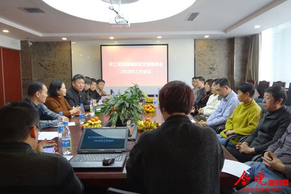 2018年1月17日,农工党天津滨海高新区支部召开2018年工作会议。高新区工委宣传部副部长、统战部副部长李兰芳出席会议并讲话,农工党滨海高新区支部主委尹波宣讲了中共十九大精神,总结了2017年工作,部署了2018年工作。会议由农工党滨海高新区支部副主委苑诚主持。