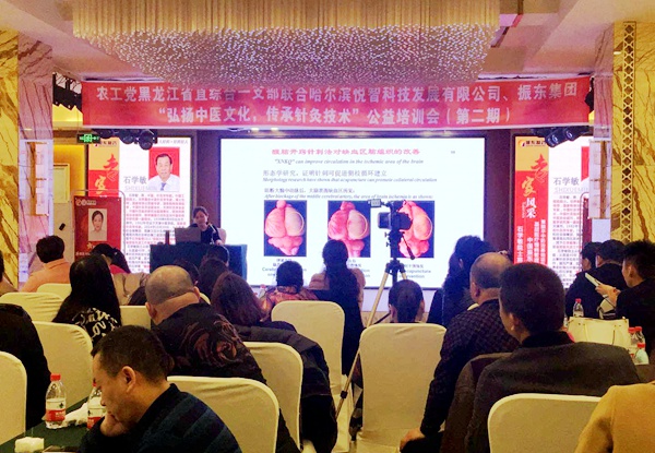 2018年3月17日至18日,农工党黑龙江省直综合一支部联合哈尔滨悦智科技发展有限公司、振东集团“弘扬中医文化,传承针灸技术”公益培训会(《醒脑开窍针刺法》第二期)在哈尔滨广来商务酒店举行,并在哈尔滨市道外区民主镇哈尔滨潘国军中医门诊部实施现场教学和实例讲解。