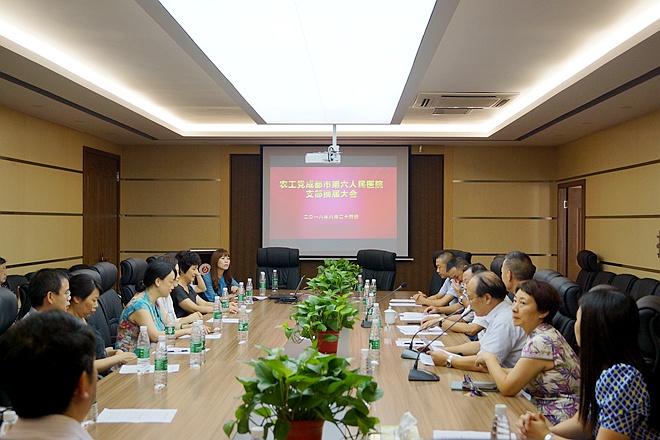 2018年8月24日,农工党成都市第六人民医院支部在医院行政楼三楼会议室召开了换届选举大会。农工党成都市委会副主委胡伟峰,副巡视员、组织处处长张波;中共成都市第六人民医院纪委书记郑光全等出席了会议。农工党成都市第六人民医院支部全体党员参加了会议。会议由上一届支部副主委虎华静主持。