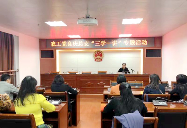 2018年11月13日,农工党南宁市良庆区总支组织全体党员开展“三学一讲”专题活动,市委会常委、良庆区人大常委会副主任何雪映在活动中给党员上党课。