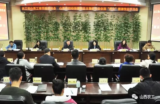 2019年3月19日下午,农工党山西工商学院委员会、山西省妇幼保健院总支部委员会在山西工商学院联合组织召开两会精神学习会议。全国人大代表、农工党山西省委会副主委、山西工商学院院长牛三平,农工党山西省委会常委、省妇幼保健院总支主委燕美琴出席会议。会议由农工党山西工商学院委员会主委张中华主持。