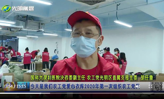 2020年6月13日上午9点左右,农工党深圳市光明区直属支部主委胡任重组织党员与国科大深圳医院工作人员、光明区爱心人士来到深圳市光明区光明社区光明大第小区培正教育机构支部的“爱心衣库”,将122箱衣服捐赠给四川省甘孜藏族州炉霍县边远山区。中共光明区委统战部对此项公益活动给予大力扶持,区委统战部副部长张善贵还亲自到”爱心衣库”参加做义工。