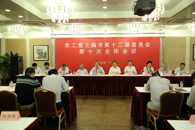 2016年7月29日下午,农工党上海市委会在市政协5号楼三楼丽都厅召开十二届十次全体会议。会议传达学习了农工党第十五届中央常务委员会第十四次会议精神,通报了农工党市委2016年上半年工作,并对下半年工作进行了部署。农工党中央副主席、上海市政协副主席、农工党上海市委会主委蔡威出席会议并作工作报告。