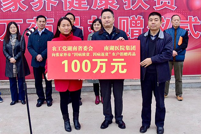 2016年12月11日,农工党湖南省委会联合南湖医院集团向张家界市因病致贫、因病返贫农户捐赠100万药品活动在张家界市桑植县洪家关白族乡卫生院举行。