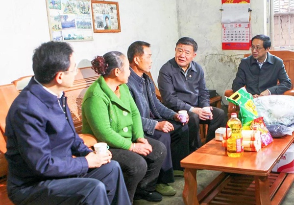 在信丰县小江镇山香村,陈竺一行先后来到贫困户江道林、余光英、张观妹家中,代表中国红十字会为每户送去包括棉衣、棉被、毛毯、大米、糖果等慰问物资在内的家庭箱和慰问金,祝福他们新年快乐、家庭幸福、健康长寿。每到一户,陈竺都亲切地拉着乡亲们的手,嘘寒问暖,共话乡情,仔细询问他们的生产生活情况,了解他们的实际困难,勉励他们在党和政府汇集各方资源的精准帮扶下,努力脱贫致富,让生活越过越好。陈竺叮嘱当地相关负责人要切实把困难群众的生产生活放在心上,最大限度帮助解决实际问题,把党和政府的温暖送到困难群众的心坎上。各级红十字会要发挥更加积极的作用,要对困难群众进行调查摸底,广泛开展“送温暖”活动,帮助困难群众渡过难关。