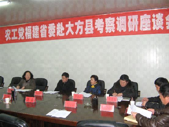 在“农工党福建省委会大方县考察调研座谈会”上,赖应辉副主委一行认真听取了县委统战部、卫生、教育,招商、园区办负责同志工作情况汇报。赖主委高度评价中共大方县委、政府新时期致力于经济社会可持续发展取得的成绩,扶贫攻坚惠及百姓卓有成效工作。赖主委说,1月12日,国务院颁布的《关于进一步促进贵州经济社会又好又快发展的若干意见》(国发[2012]2号文件),充分体现了党中央、国务院对贵州的亲切关怀和国家有关部委对贵州的鼎力支持,贵州经济社会跨越发展将迎来良好的机遇。农工党福建省委会将准确把握胡锦涛总书记“同心”思想的科学内涵,积极为毕节试验区建设建言献策。赖主委表示将结合农工党福建省委会自身优势,就大方县工业园招商引资、妇产科建设、医卫人才培训、中药材种植与加工以及协助大方在福建开展商贸活动等方面给予支持。