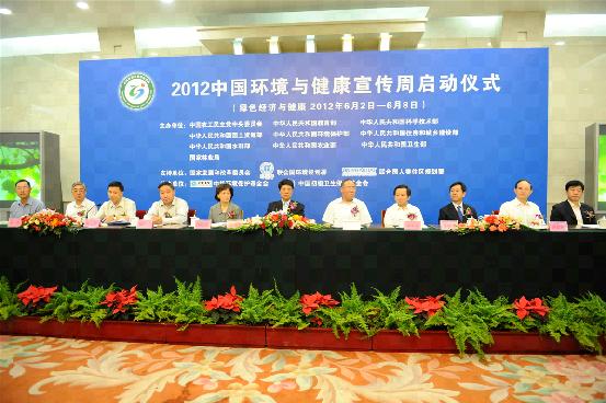2012年6月2日上午,“2012中国环境与健康宣传周”启动仪式在北京人民大会堂隆重举行。全国政协副主席、农工党中央常务副主席陈宗兴,农工党中央副主席汪纪戎,国家发展改革委副主任解振华,环境保护部副部长李干杰,水利部副部长胡四一,卫生部副部长陈啸宏,中央纪委驻国家林业局纪检组组长、国家林业局党组成员陈述贤,国土资源部总工程师钟自然,住房城乡建设部总工程师陈重,联合国环境署驻华代表张世钢,联合国人居署驻华代表张振山等出席了启动仪式。中国环境与健康宣传周的两位形象大使,联合国环保艺术大师袁熙坤先生和国际著名影星成龙先生也出席了仪式。